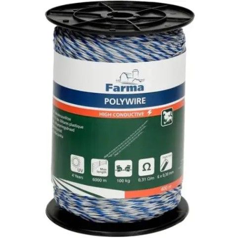 Elektriskā gana aukla 400 m Farma zila/balta POLYWIRE HC